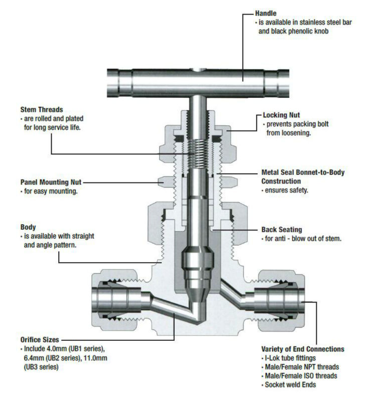 Cấu tạo của van kim điều chỉnh áp suất EWP 316 6000psi